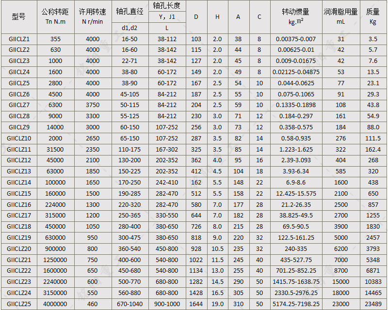 GIICLZ型基本型窄型鼓形齿式联轴器