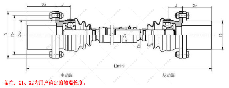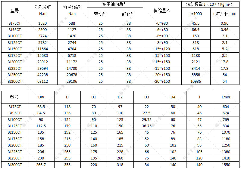 安装距离的调整和轴向伸缩是通过中间轴花键副实现的,伸缩量可根据特定需求进行调整,许用轴间角大于BJ-D型。