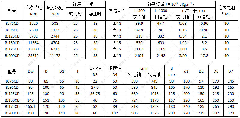 安装距离的调整和轴向伸缩是通过万向节内滑动花键副实现的,许用轴间角大于BJ-D型。