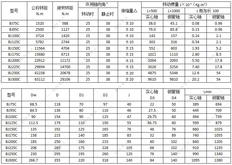安装距离的调整和轴向伸缩是通过万向节内滑动花键副实现的,许用轴间角大于BJ-D型。