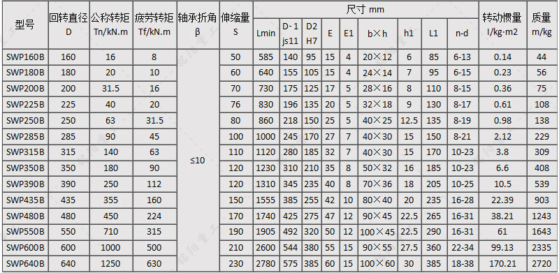SWP型万向联轴器主要类型: